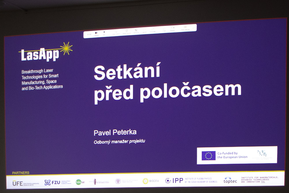 On Thursday, February 5, 2026, a meeting of LasApp project participants took place in the ÚFE hall in Prague-Kobylisy. The program was opened by Pavel Peterka, who presented the objectives of the meeting and summarized the current status of the project and the progress achieved.